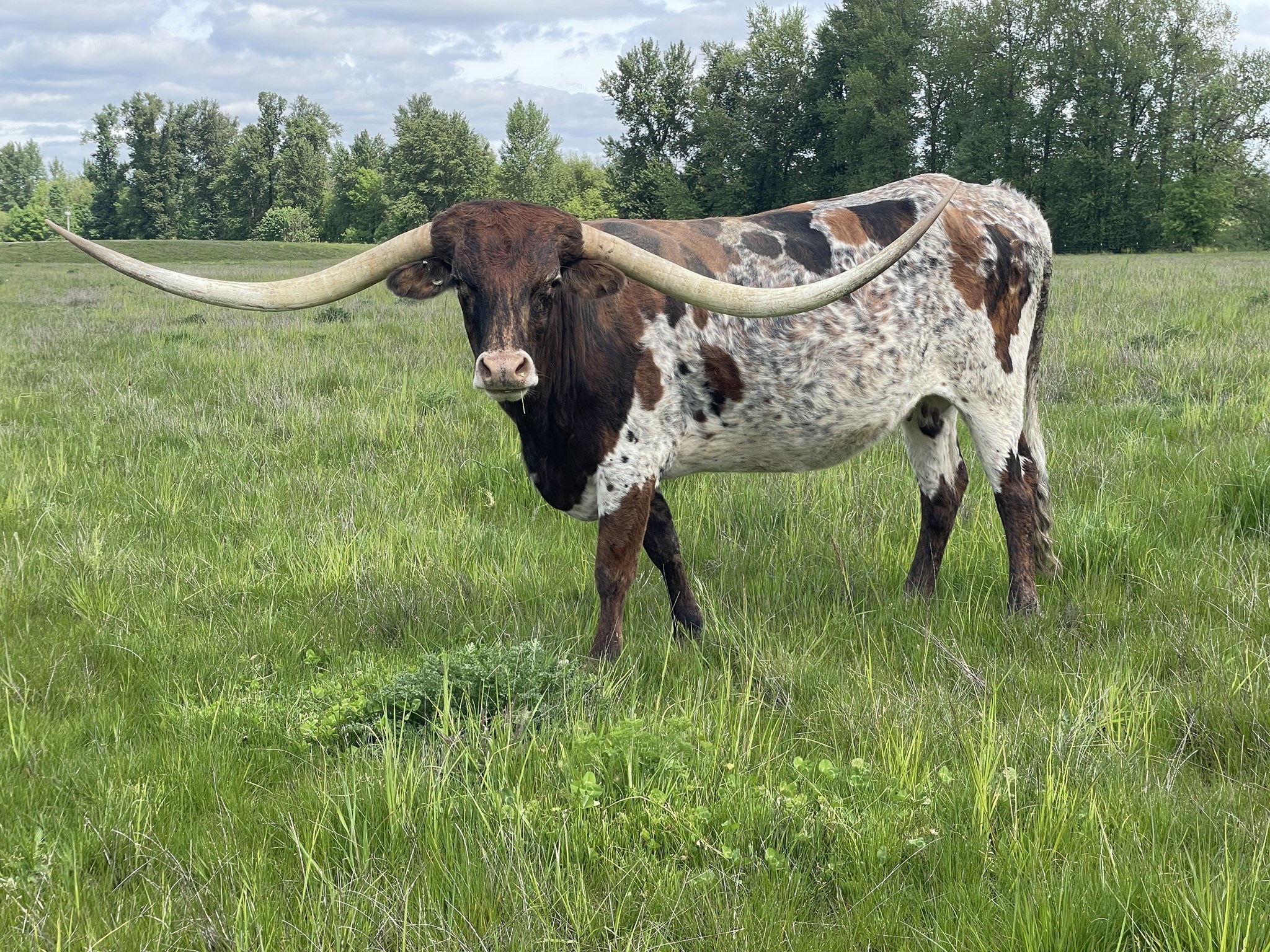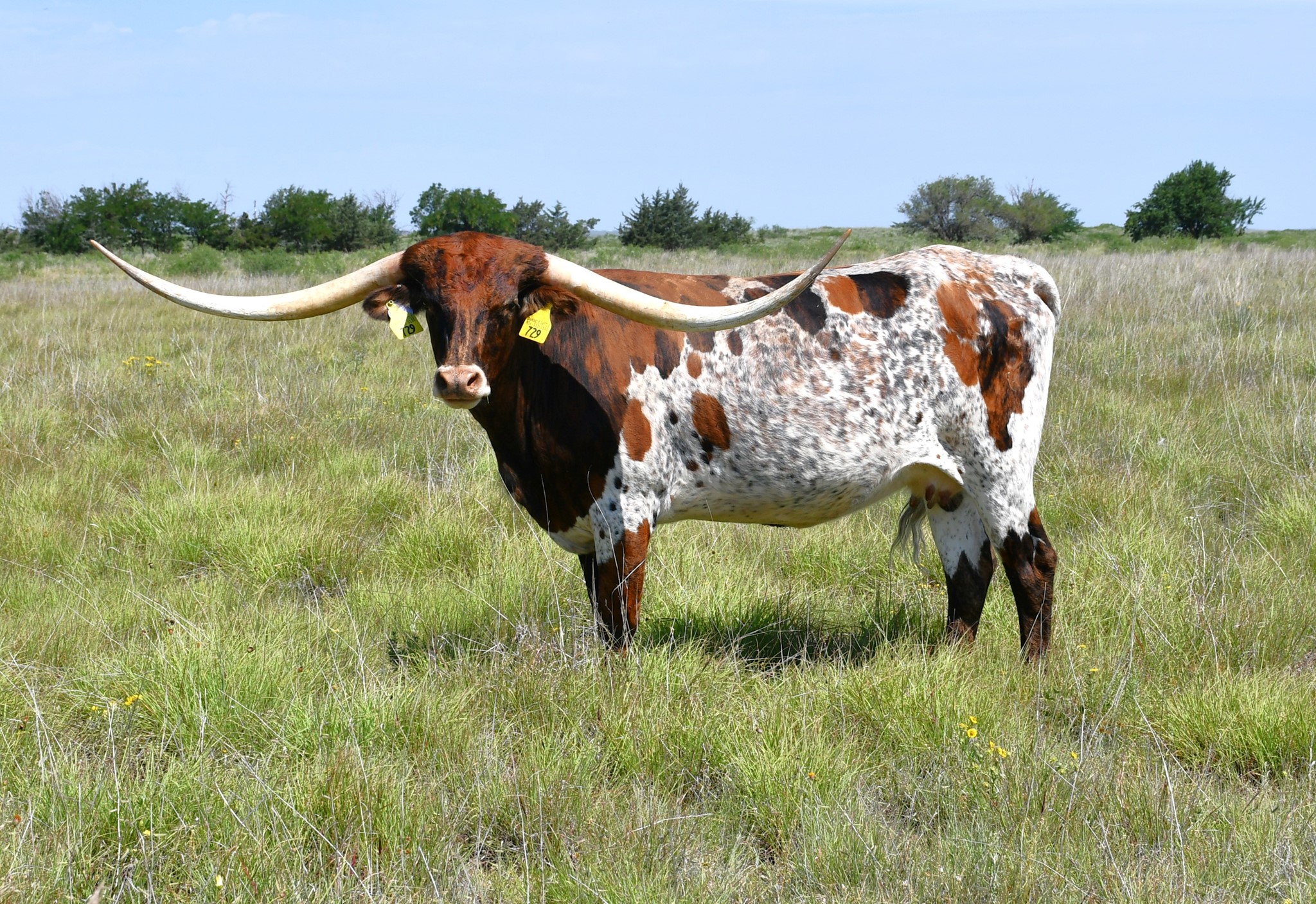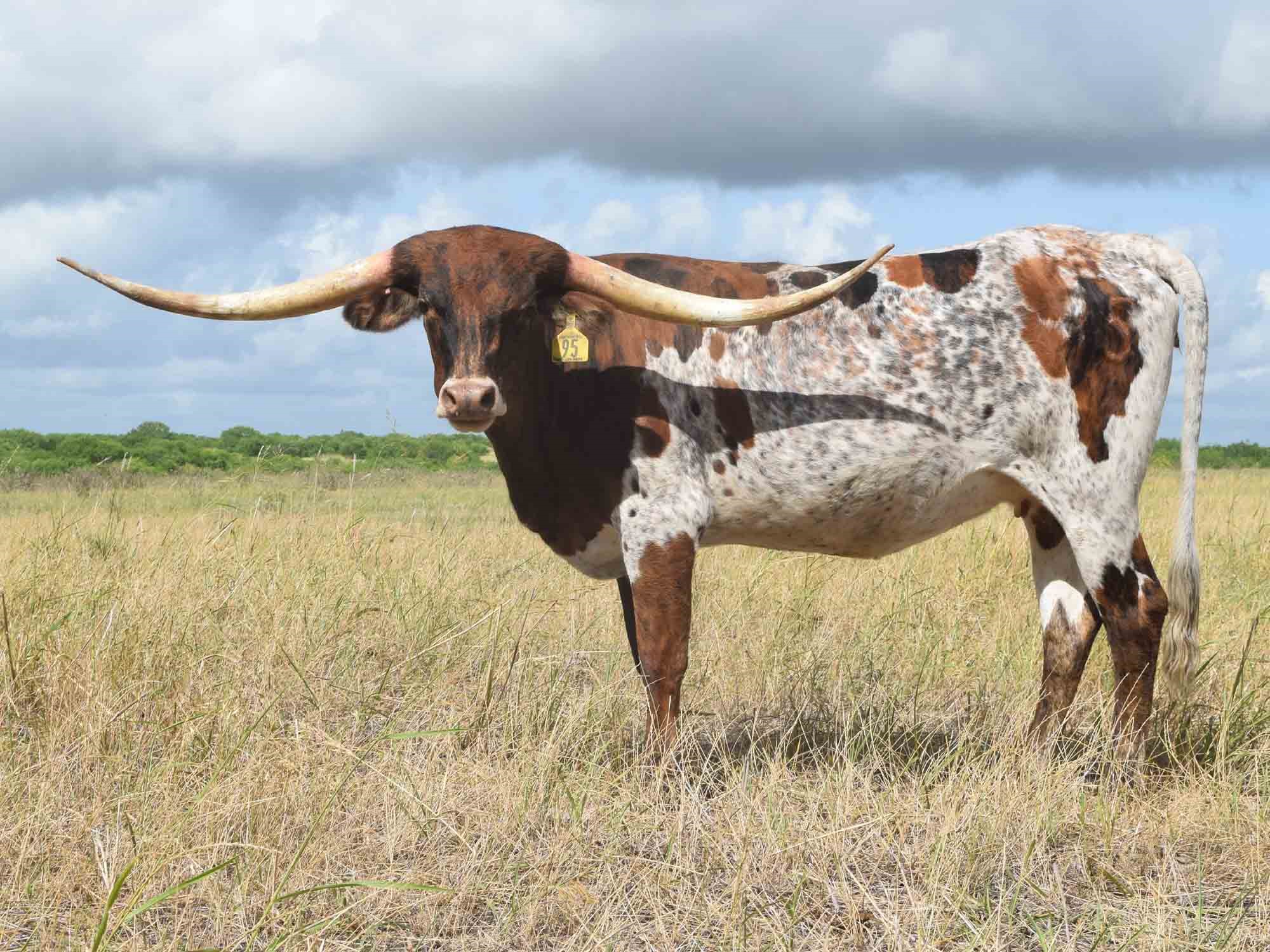 Picking names is important in the industry, and Buckhorn did not miss when they named her Purdy. She has that spotted brindle pattern that is hard to beat and as feminine face as you could ask for. Her low swoop horn set is starting to roll back to keep the tip to tip and total horn measurements growing.