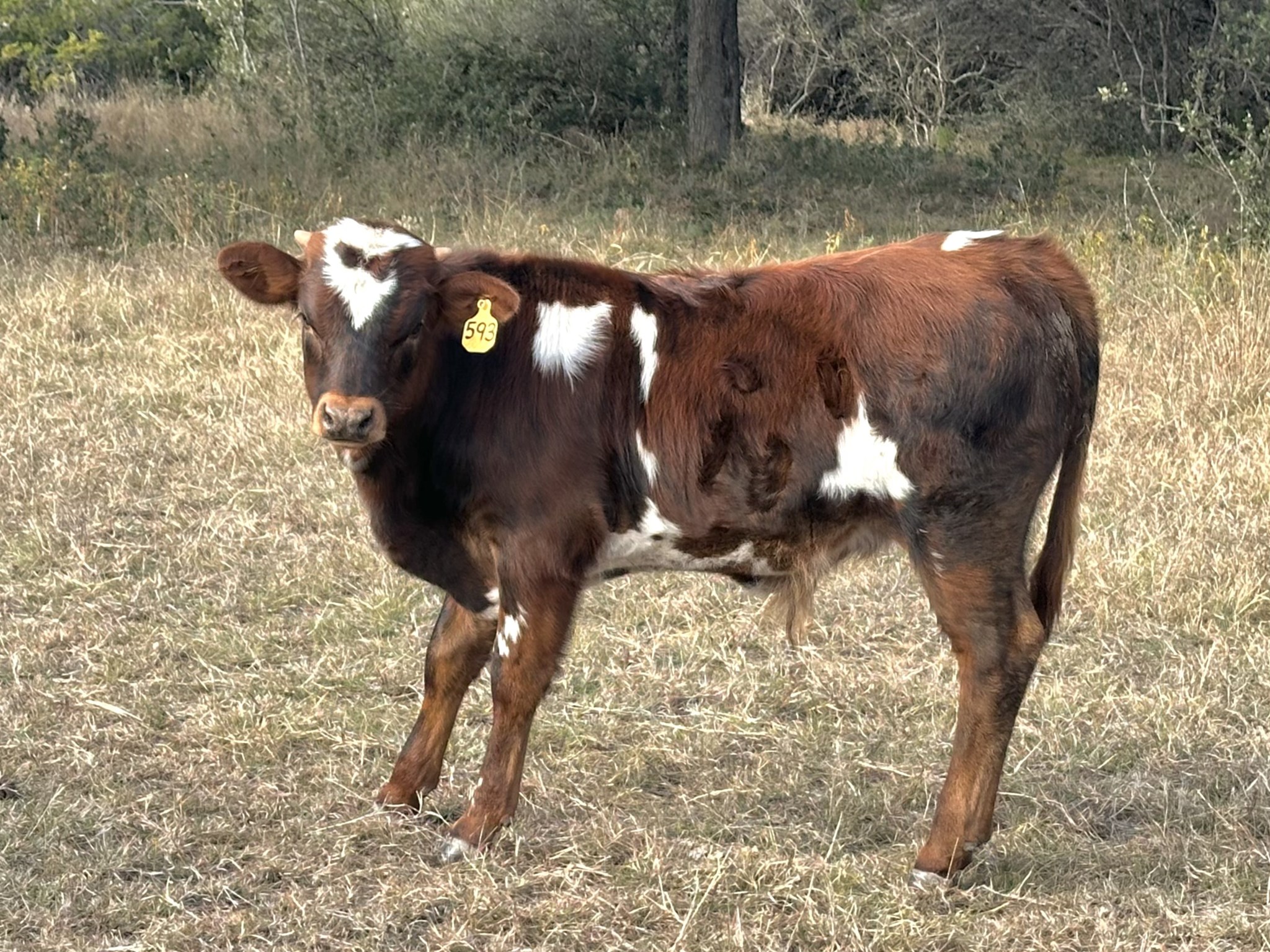 Exciting bull calf out of 100" ttt KDK Hercules and a huge twisty horned dam. Pre-weaning special!